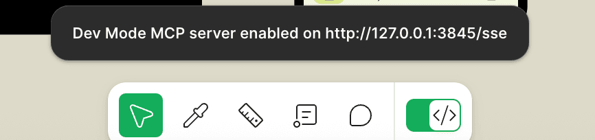 启用后,Figma的MCP服务会运行在http://127.0.0.1:3845/sse。接下来,在我们安装好MCP插件后,就可以让CC和Figma开始交互了。